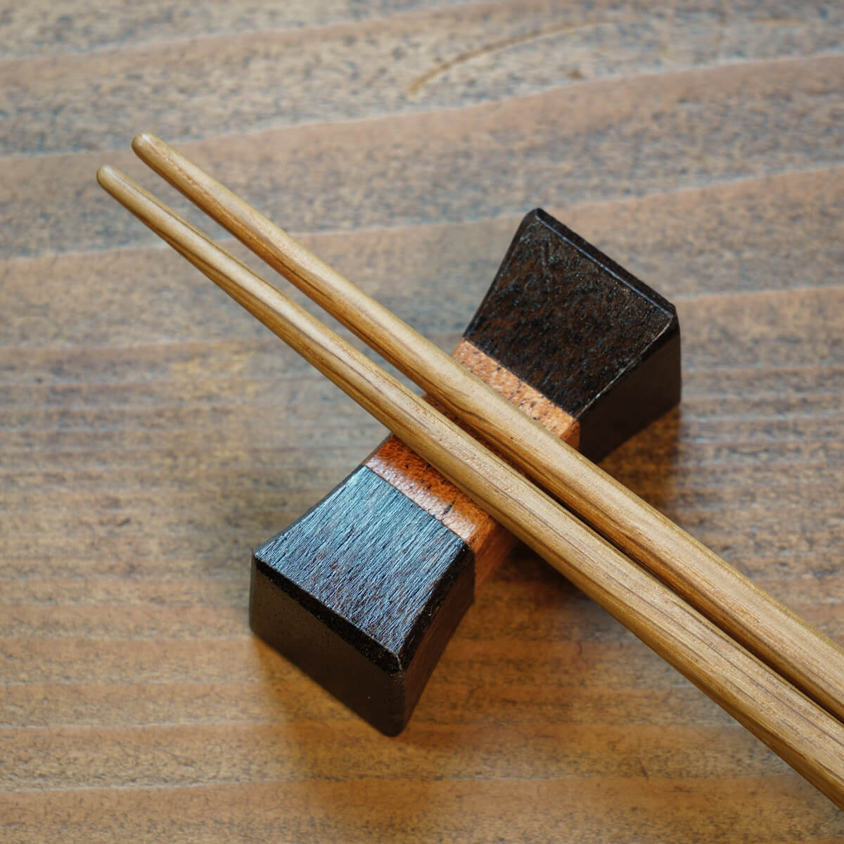 箸屋一膳の箸はどれも木目や色合いが美しく、丁寧に磨き上げられた後何度も何度も塗装が施された箸は、手に取った時の感触がとても優しい。決して派手に主張することなく、日々の食卓にやさしく寄り添う安心感がある。